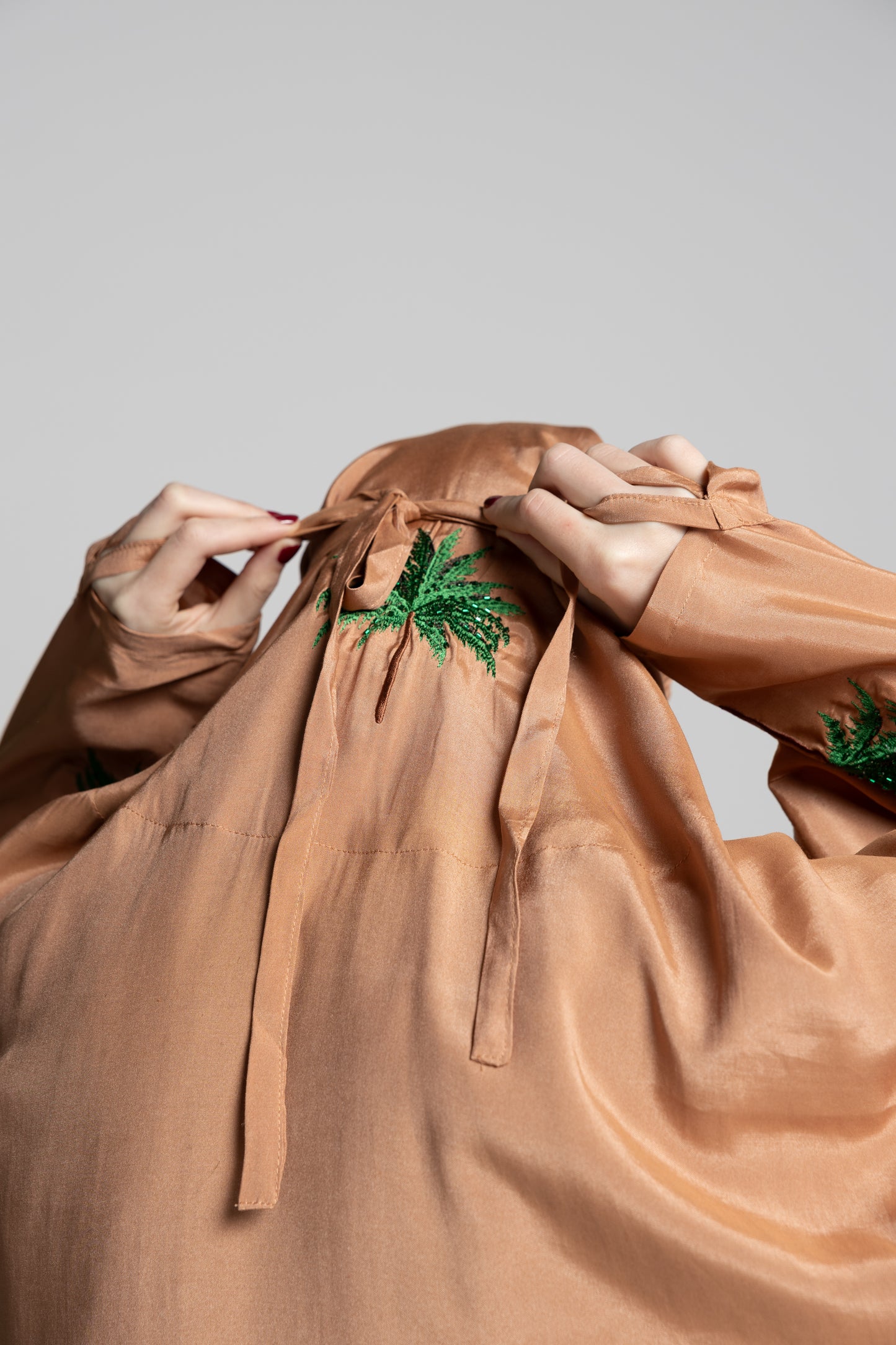 القماش : رايون حريري ( قطن به القليل من خيوط الحرير )