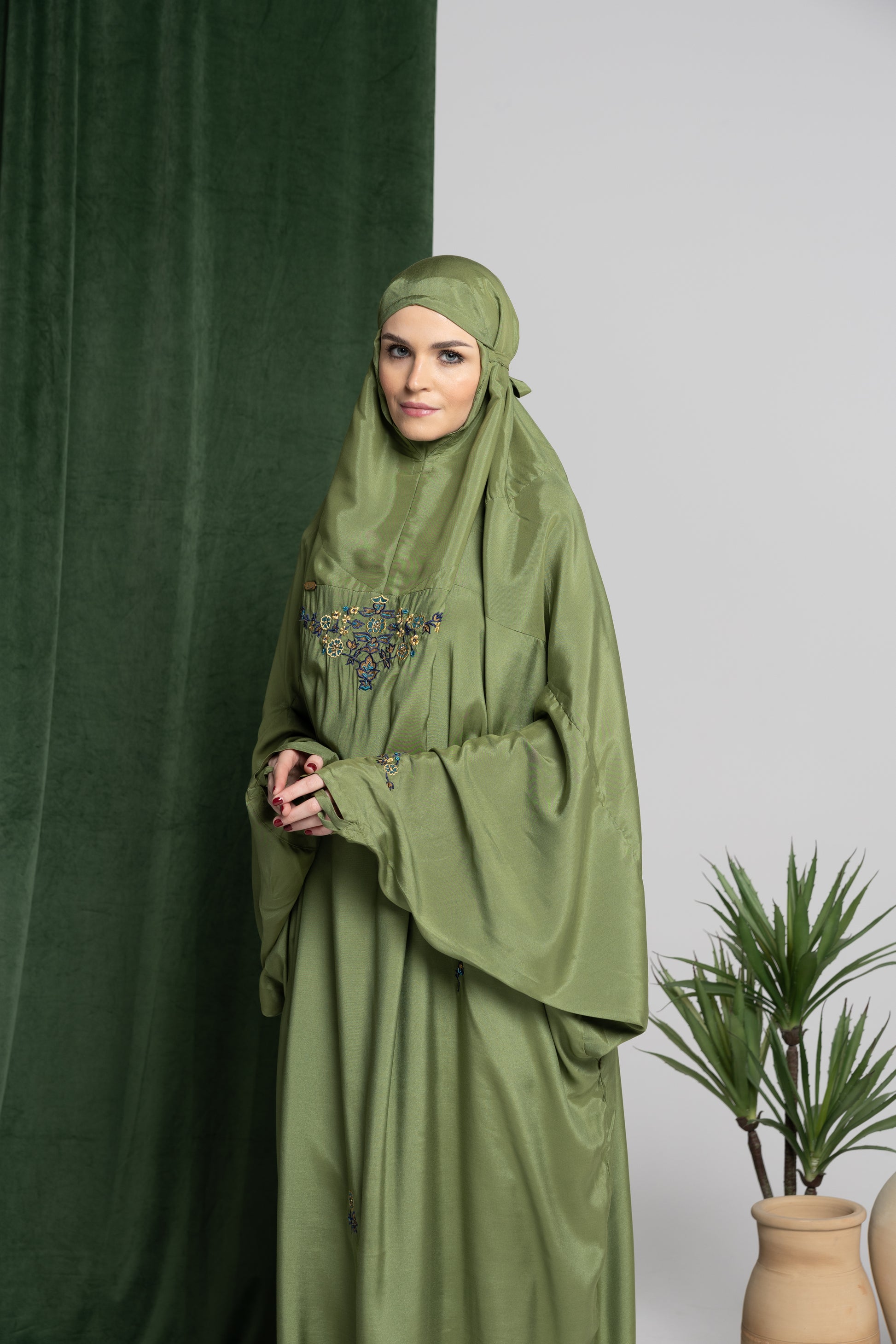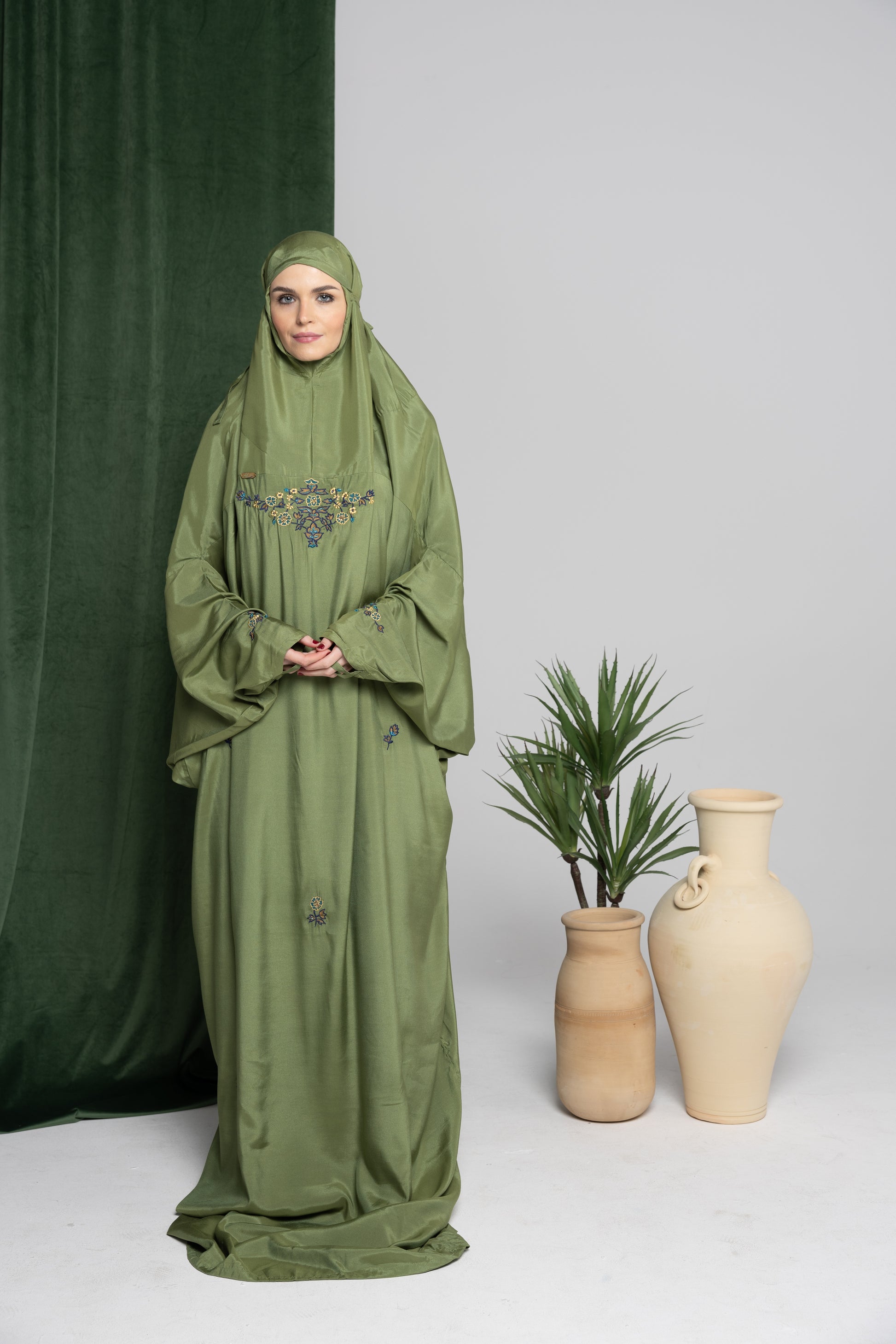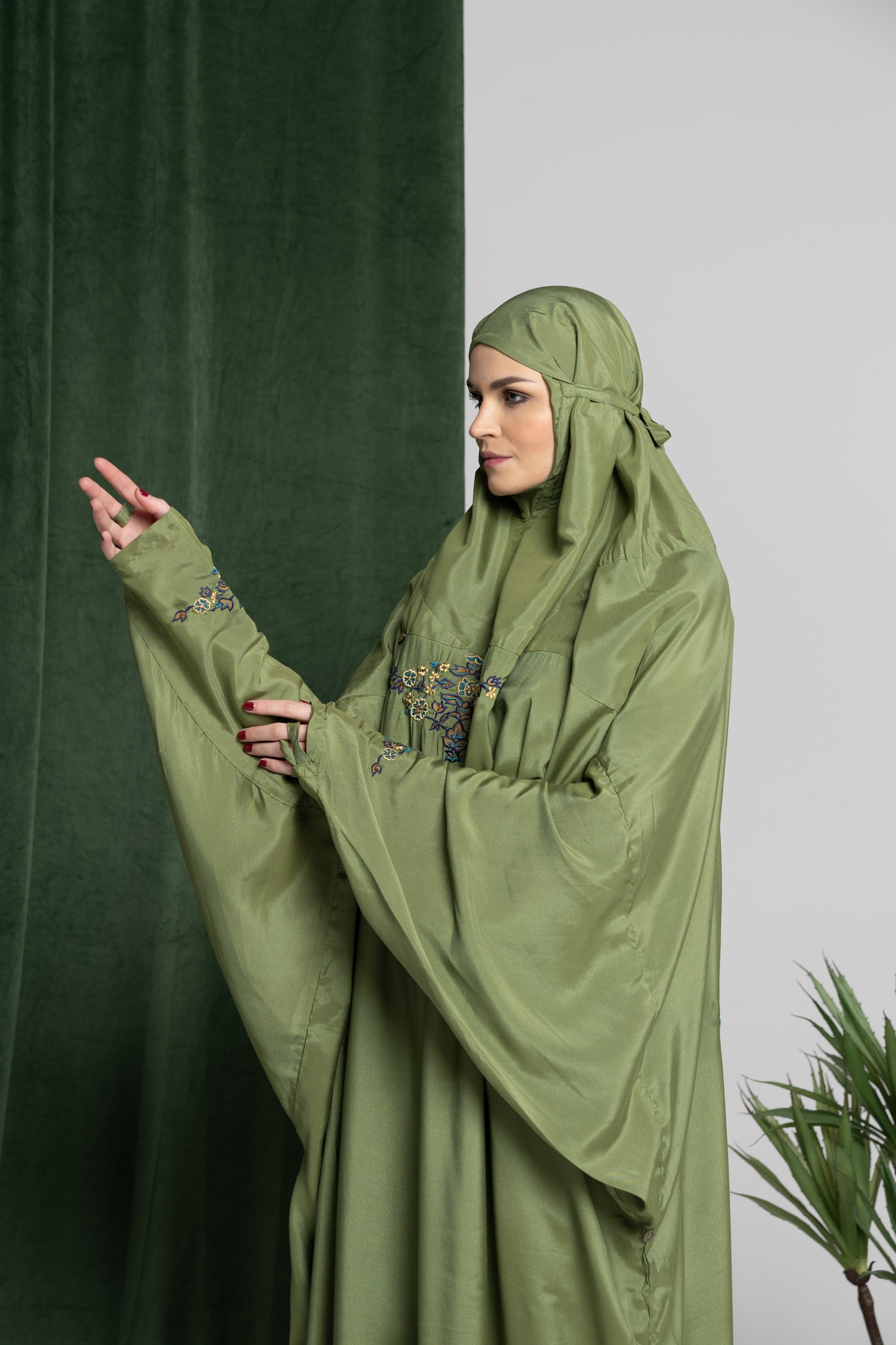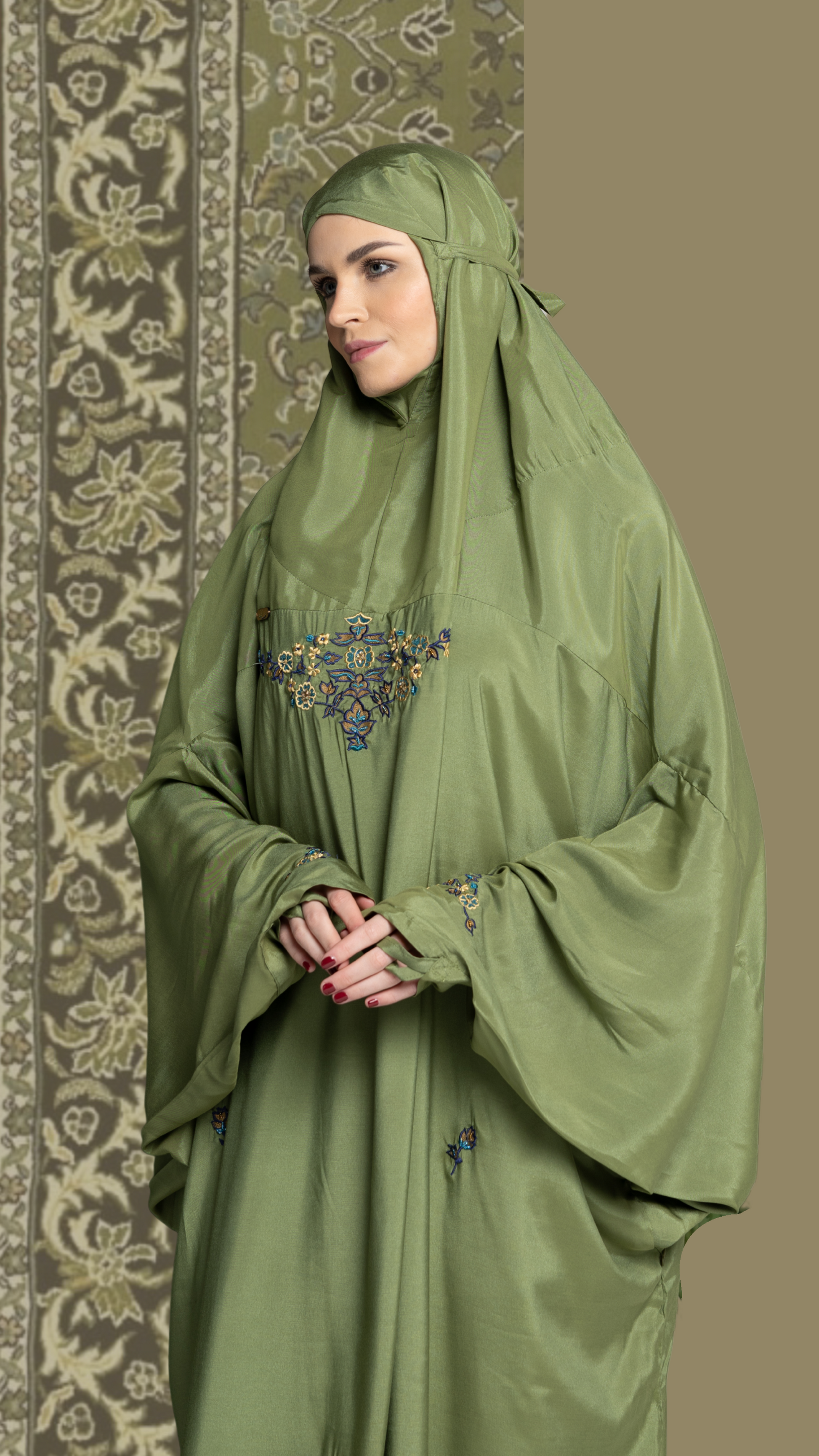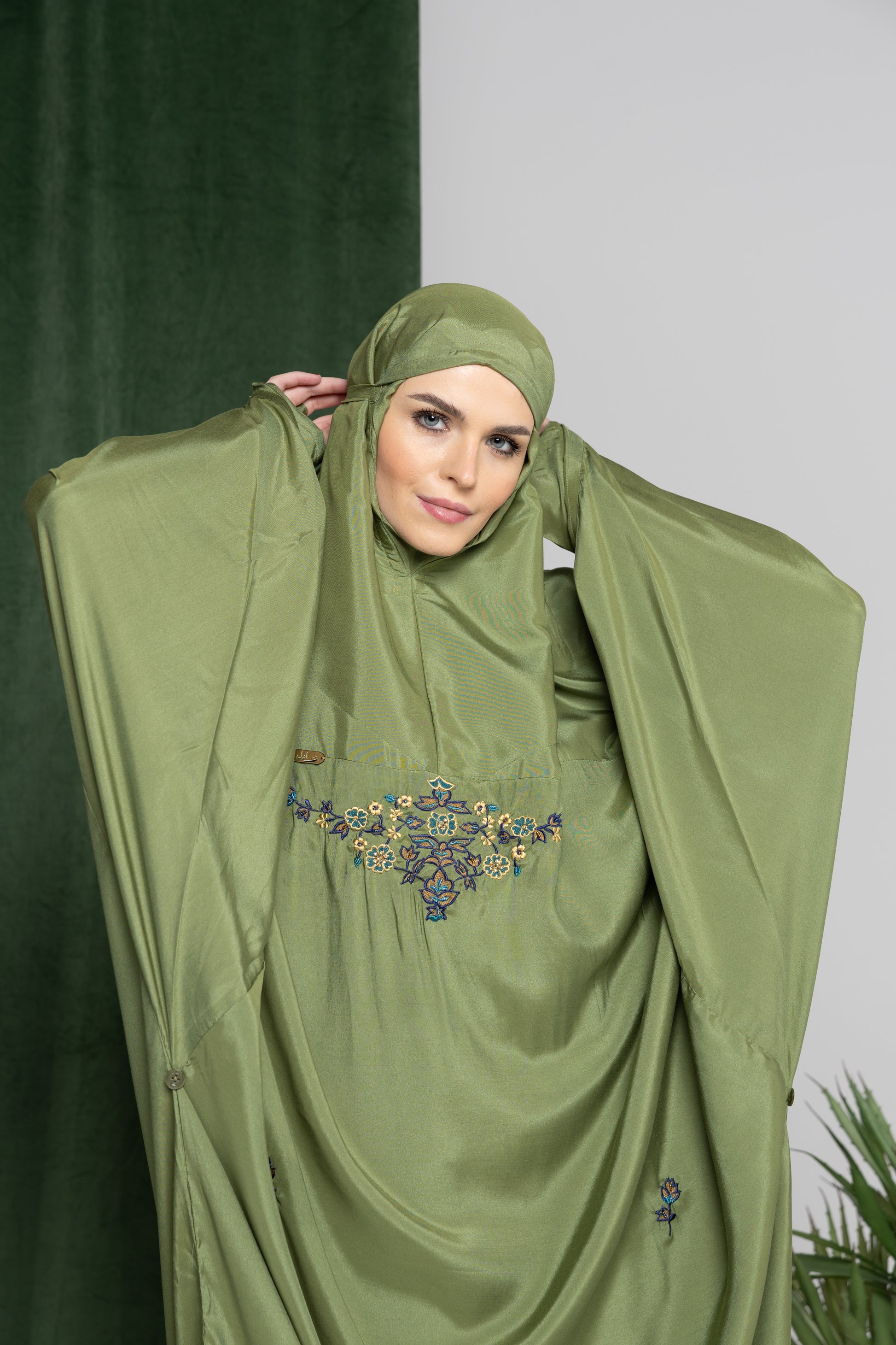 - يوجد به أزرار جانبية لرفع الملابس بعد الانتهاء من الصلاة