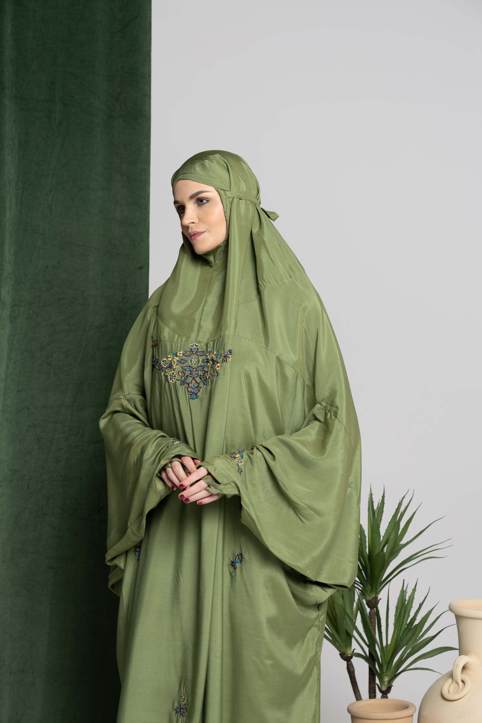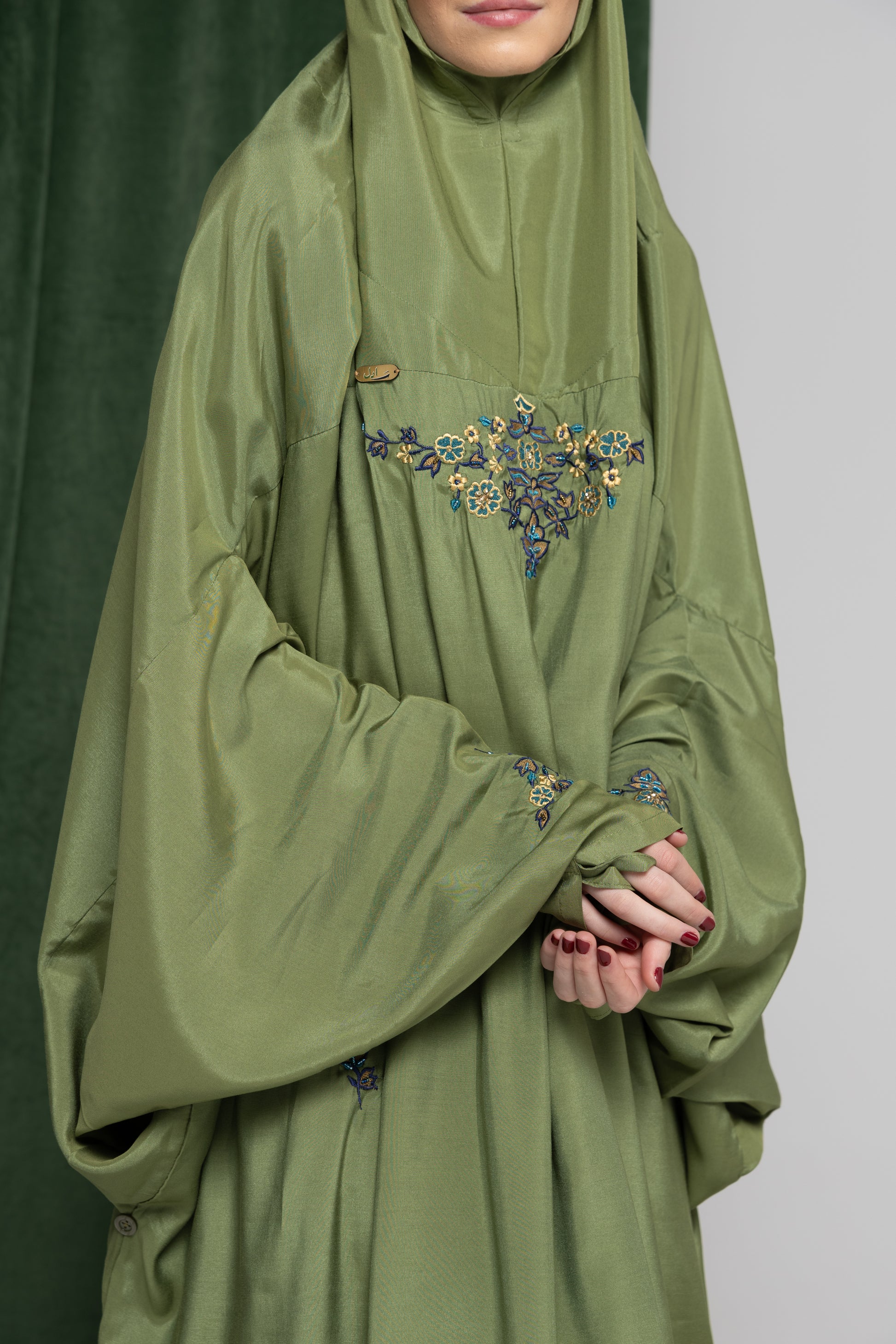 - يوجد به خاتم في الأكمام لتفادي ارتفاع الأكمام أثناء رفع اليد أثناء الصلاة