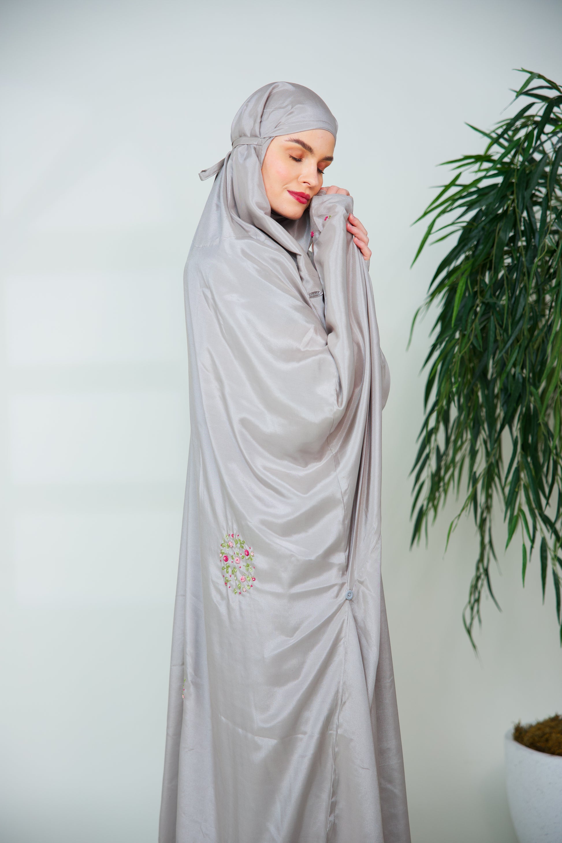 من مجموعة الورود المتميز بلونه الفضي البراق مع لمسات من التطريز اليدوي