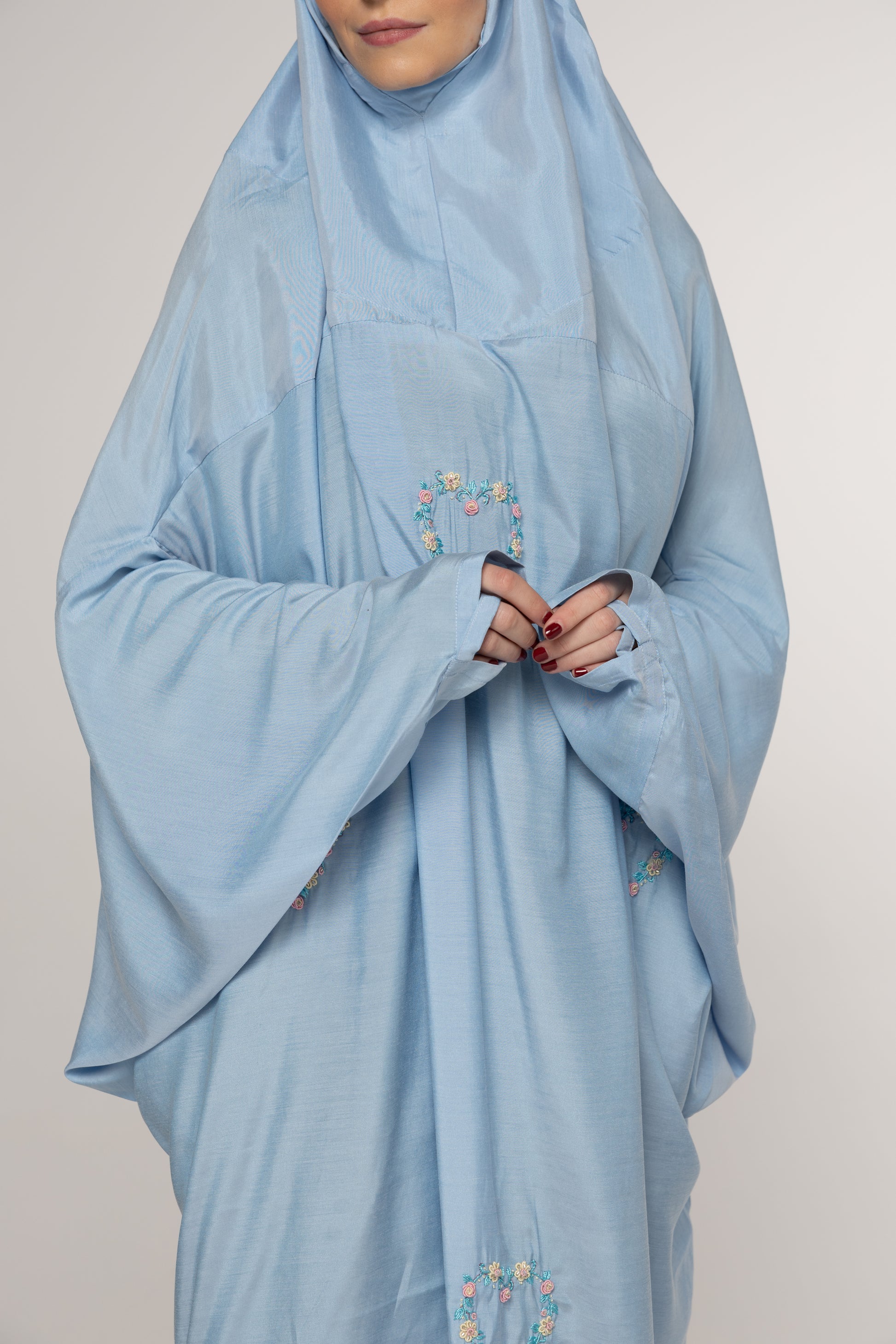 - يوجد به خاتم في الأكمام لتفادي ارتفاع الأكمام أثناء رفع اليد أثناء الصلاة